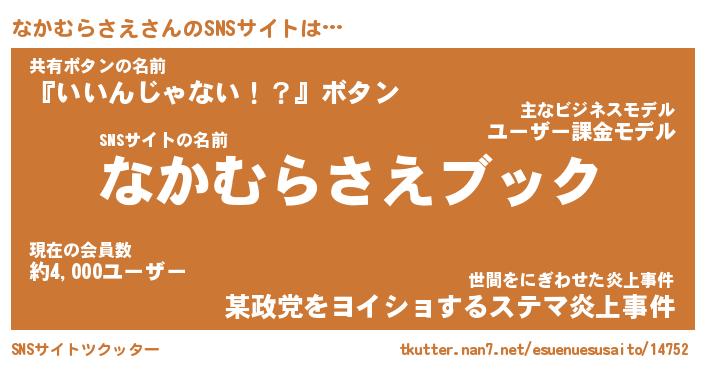 | 男性向けラノベタイトル風あだ名 | 『ナカムラサエアートオンライン』 |