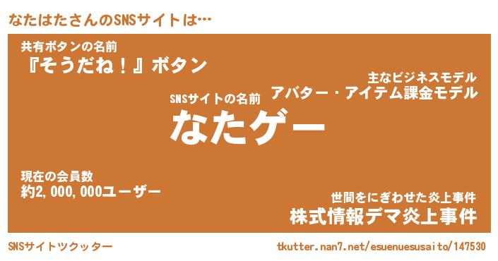 | ファンタジー風あだ名 | 『ナタフェル』『エターナルナタハター』 |