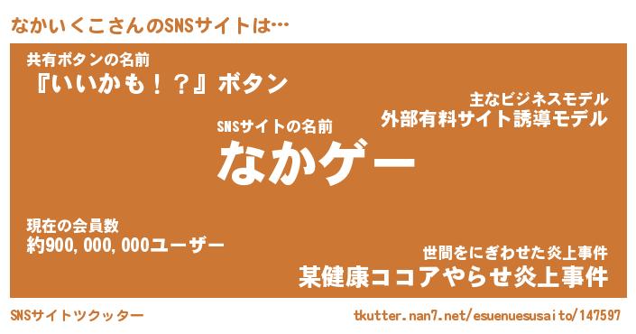 | ファンタジー風あだ名 | 『ナカフェル』『エターナルナカイクコー』 |