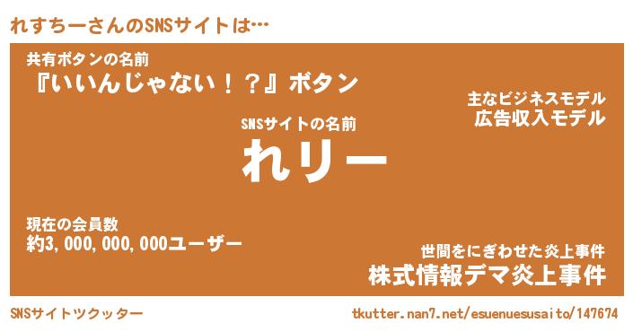 | ヘコむあだ名 | 『れすにゅー』『豆乳』『れすっちょ』 |