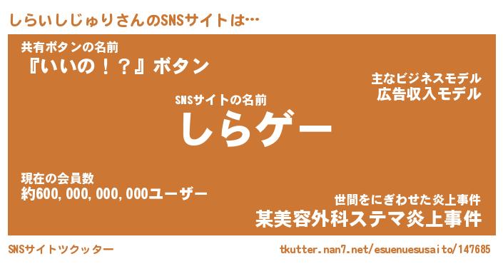 | 女子向けラノベタイトル風あだ名 | 『(仮)しらいしじゅりのやんごとなき事情』 |