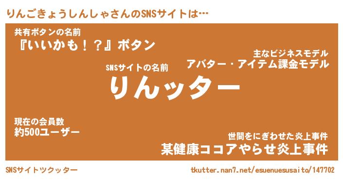 | ツイッター | りんごきょうしんしゃさんのツイッターID『neet_man』 |