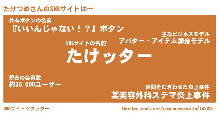 | ファンタジー風あだ名 | 『タケフェル』『エターナルタケツメー』 |