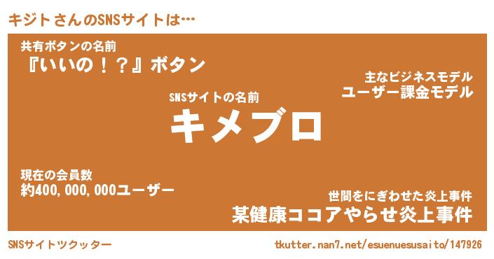 | 意味不明あだ名 | 『ペロリンキジト』『キジトフォーエバー』 |