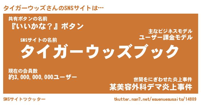 | 欧米人風あだ名 | 『マイケルタイガーウッズ』 |
