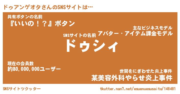 | 男性向けラノベタイトル風あだ名 | 『ドゥアンゲオタの憂鬱』 |