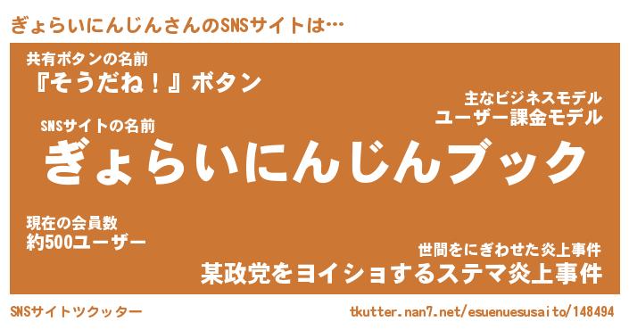 | 男性向けラノベタイトル風あだ名 | 『ギョライニンジンアートオンライン』 |