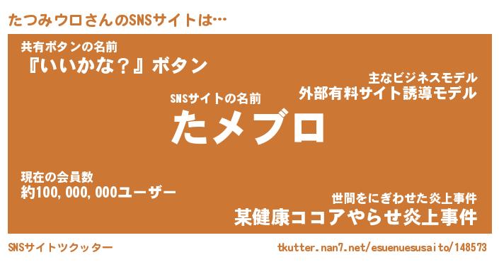 | ツイッター | たつみウロさんのツイッターID『katatsumuri_star』 |