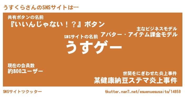 | ヘコむあだ名 | 『うすっふぃ~』『牛乳』『うすを』 |