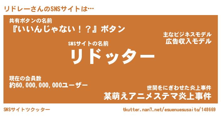 | ヘコむあだ名 | 『リドにー』『牛乳』『リド太郎』 |