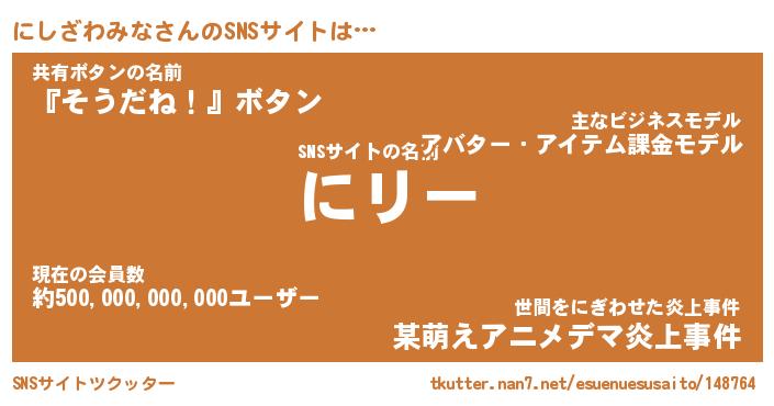 | ポケモン風あだ名 | 『ニシチュウ』『ニシザダネ』 |