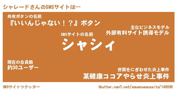 | 恥ずかしいあだ名 | 『プリティーシャレード』『シャっちょ』 |