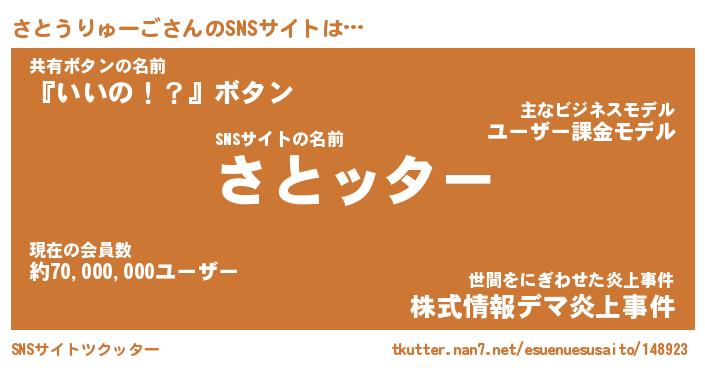 | 肩書あだ名 | 『さとうりゅーご御曹司』 |