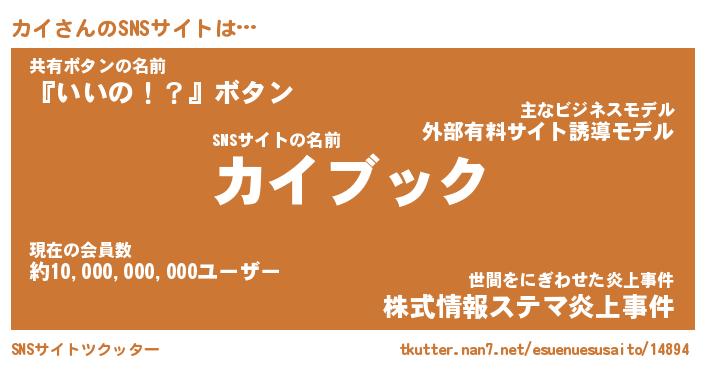 | ヘコむあだ名 | 『カイふぇ~』『つくし』『カイっ子』 |