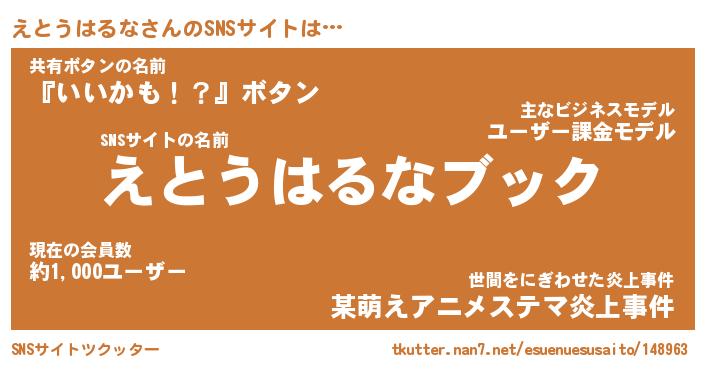 | ツイッター | えとうはるなさんのツイッターID『namakemono_nyan』 |