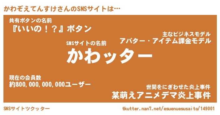| 肩書あだ名 | 『かわぞえてんすけ社長』 |