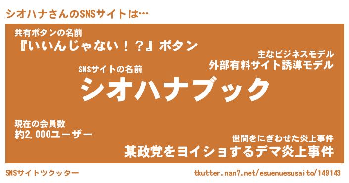 | 男性向けラノベタイトル風あだ名 | 『シオハナアートオンライン』 |