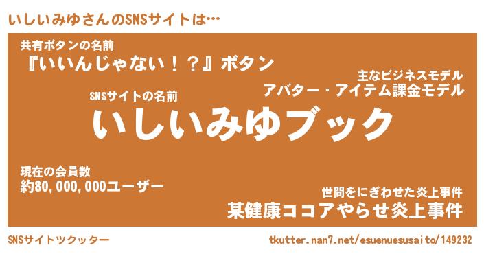 | 肩書あだ名 | 『いしいみゆ店長』『いしいみゆ総理大臣』 |