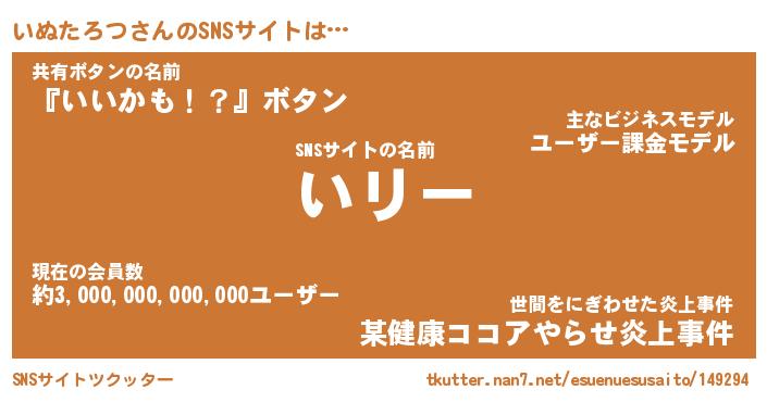 | ヘコむあだ名 | 『いぬもー』『酢こんぶ』『いぬ太郎』 |