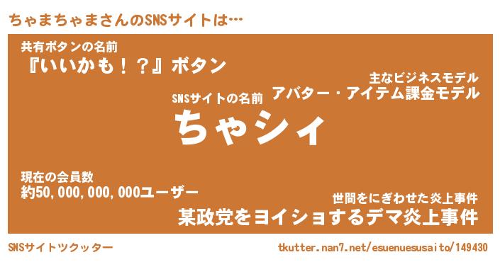 | 肩書あだ名 | 『ちゃまちゃまCEO』『ちゃまちゃま大統領』 |
