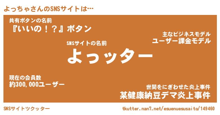 | 意味不明あだ名 | 『ペロリンよっちゃ』『永久保存よっちゃ』 |