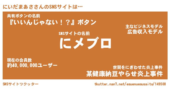 | 肩書あだ名 | 『にいだまあさ社長』『にいだまあさ班長』 |