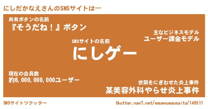 | 肩書あだ名 | 『にしだかなえ御曹司』 |