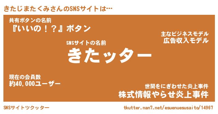 | 女子向けラノベタイトル風あだ名 | 『誰かこのきたじまたくみを説明してください! ~契約から始まるウェディング~』 |