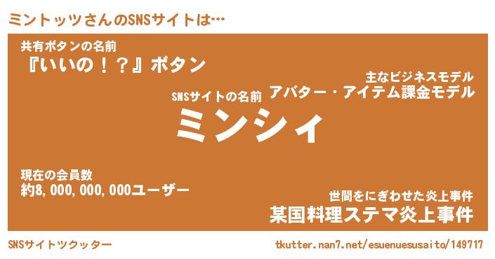 | ヘコむあだ名 | 『ミンにゅー』『つくし』『ミンお』 |