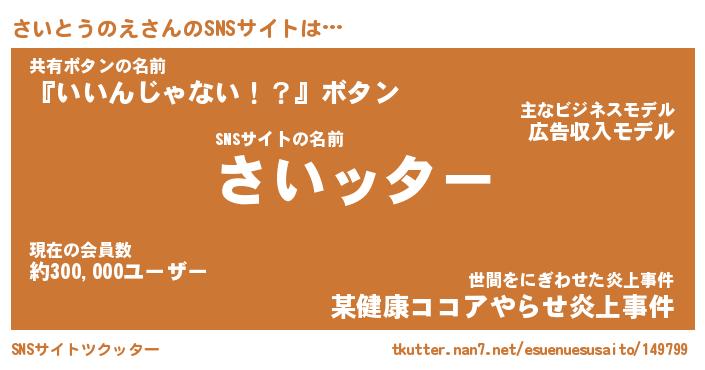 | 肩書あだ名 | 『さいとうのえCEO』『さいとうのえ班長』 |