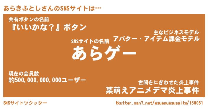 | 胡散臭い通販商品みたいなあだ名 | 『必ず成功する霊験あらたかなお札…その名も「あらきふとし」』 |