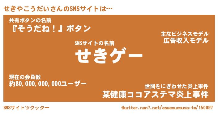 | 男性向けラノベタイトル風あだ名 | 『せきやこうだいの憂鬱』 |