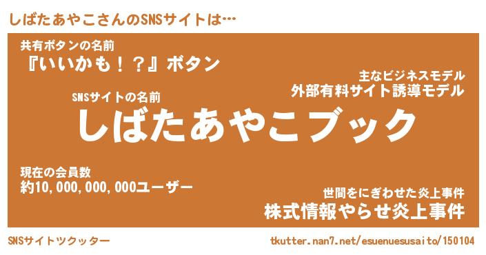| 男性向けラノベタイトル風あだ名 | 『シバタアヤコアートオンライン』 |