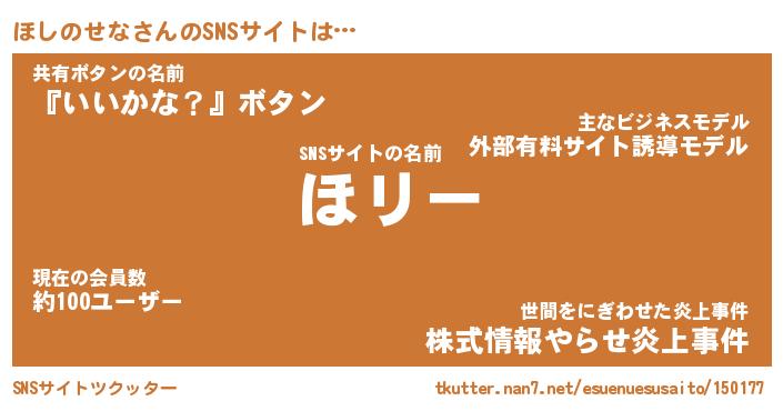 | ヘコむあだ名 | 『ほしにゅー』『つくし』『ほしお』 |