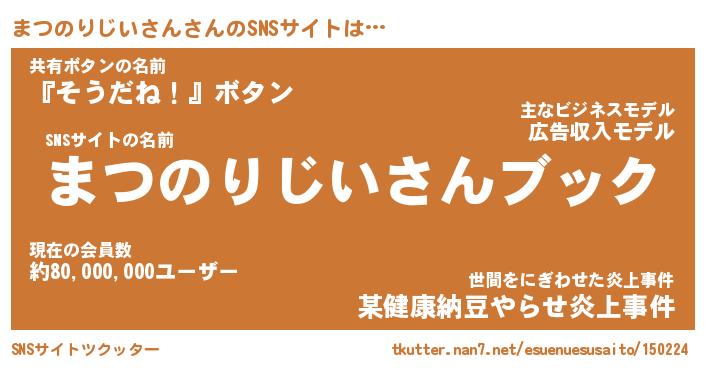 | ツイッター | まつのりじいさんさんのツイッターID『namakemono_star』 |