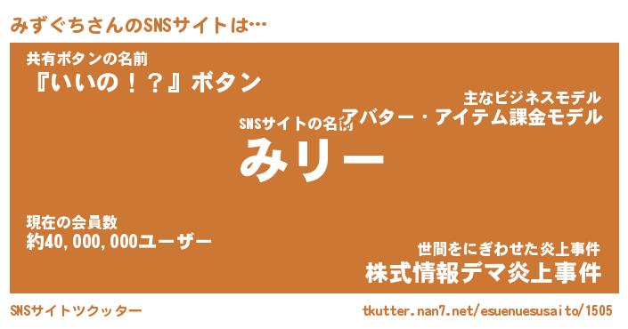 | 肩書あだ名 | 『みずぐち社長』『みずぐち総理大臣』 |