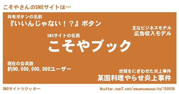 | 男性向けラノベタイトル風あだ名 | 『コソヤアートオンライン』 |