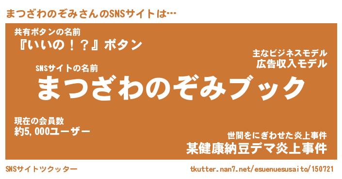| 男性向けラノベタイトル風あだ名 | 『マツザワノゾミアートオンライン』 |
