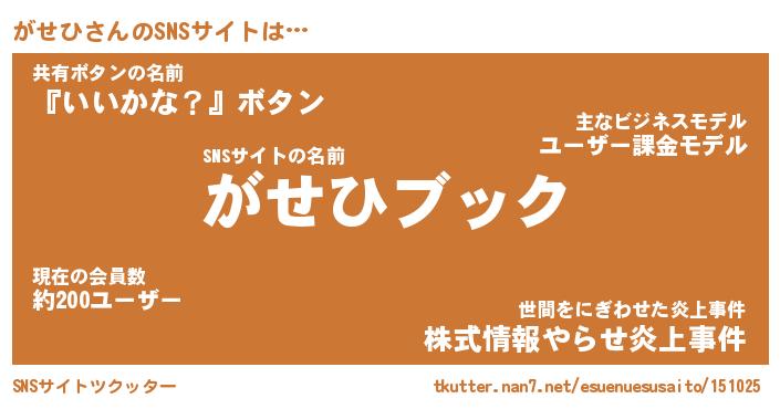 | ヘコむあだ名 | 『がせもー』『なまこ酢』『がせ太郎』 |