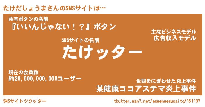 | ヘコむあだ名 | 『たけにー』『なまこ酢』『たけを』 |