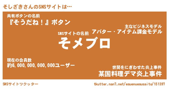 | 自動車の名前っぽいあだ名 | 『ソシティマ』『ソクア』『ヴィッソ』 |