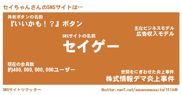 | 胡散臭い通販商品みたいなあだ名 | 『必ず成功する霊験あらたかなお札…その名も「セイちゃん」』 |
