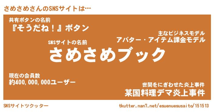 | 胡散臭い通販商品みたいなあだ名 | 『億万長者になれるブレスレット…その名も「さめさめ」』 |