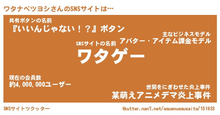 | 肩書あだ名 | 『ワタナベツヨシCEO』 |