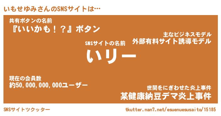 | 肩書あだ名 | 『いもせゆみ店長』『いもせゆみ国家主席』 |