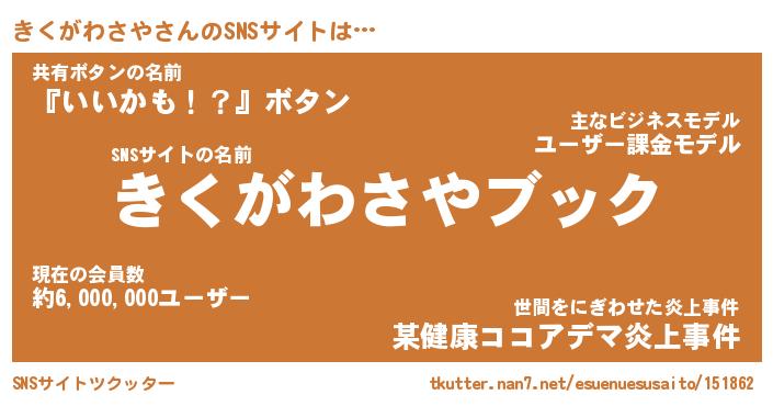 | 胡散臭い通販商品みたいなあだ名 | 『億万長者になれる霊験あらたかなお札…その名も「きくがわさや」』 |