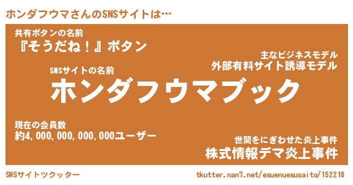 | 胡散臭い通販商品みたいなあだ名 | 『億万長者になれる水晶球…その名も「ホンダフウマ」』 |