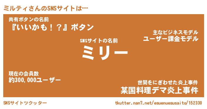 | 意味不明あだ名 | 『ペロリンミルティ』『永久保存ミルティ』 |