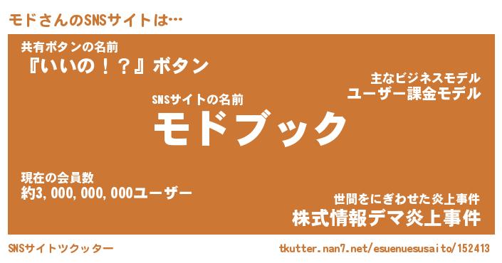 | 胡散臭い通販商品みたいなあだ名 | 『億万長者になれるブレスレット…その名も「モド」』 |