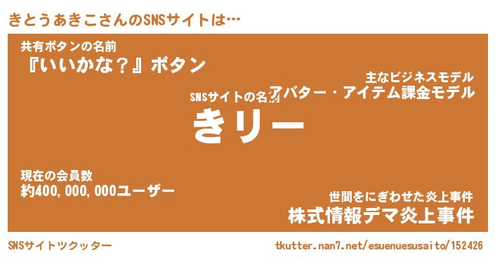 | ヒーロー風カッコイイあだ名 | 『スーパーキトウアキコ』『黄金騎士キト』 |
